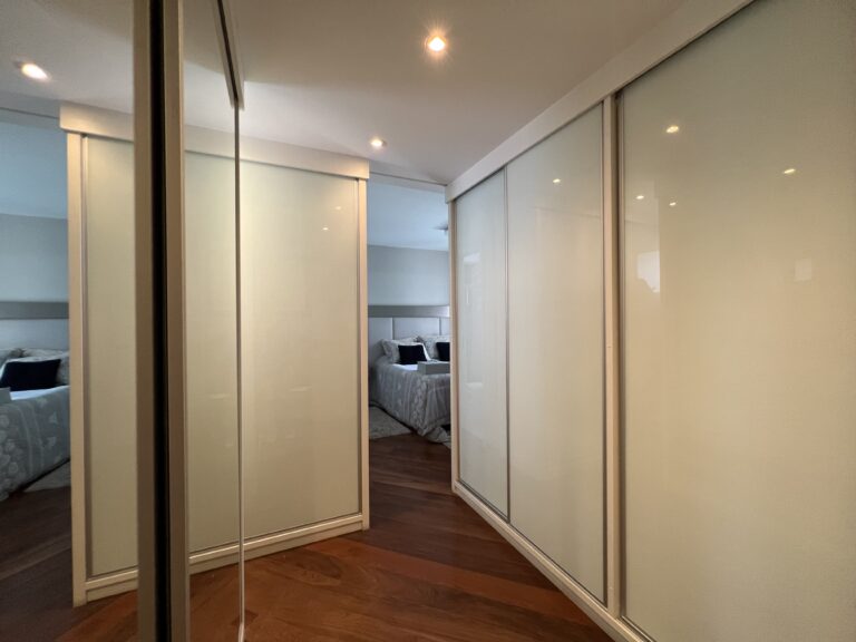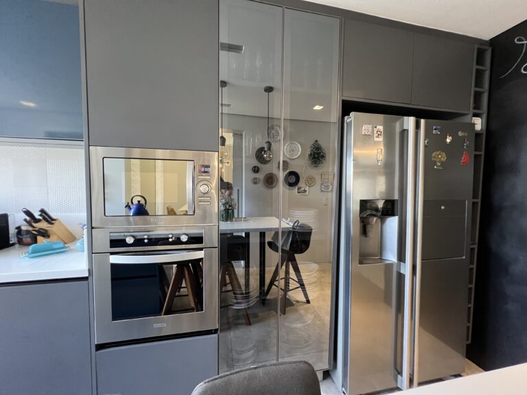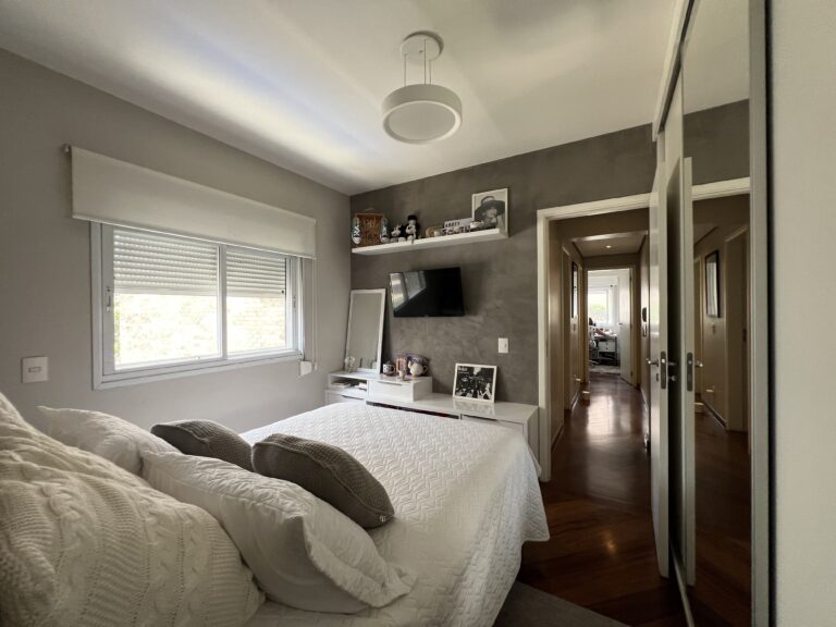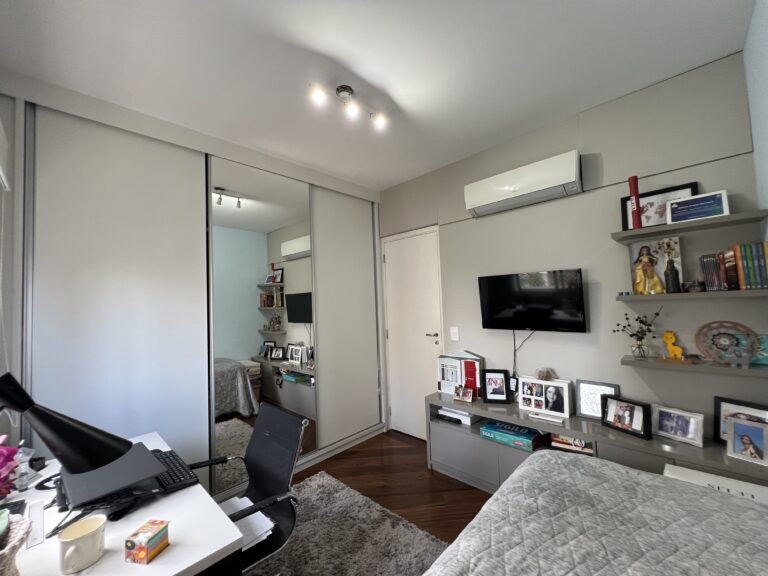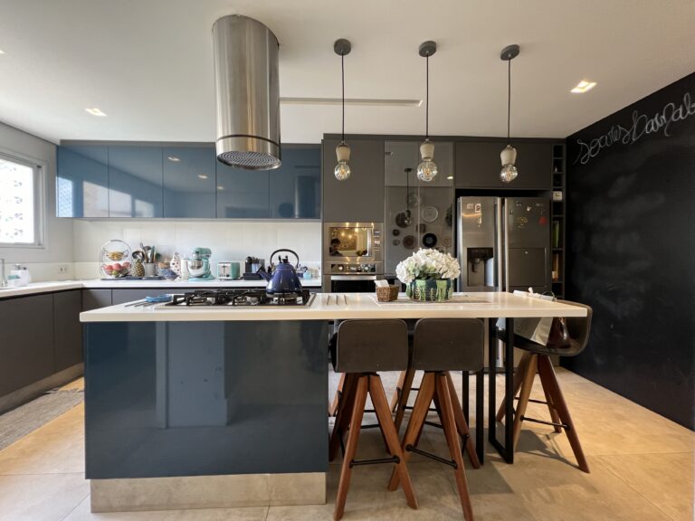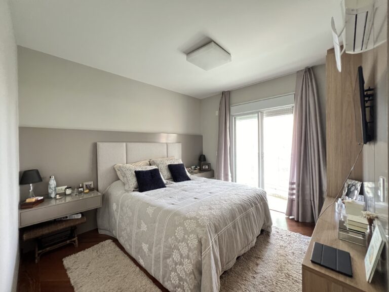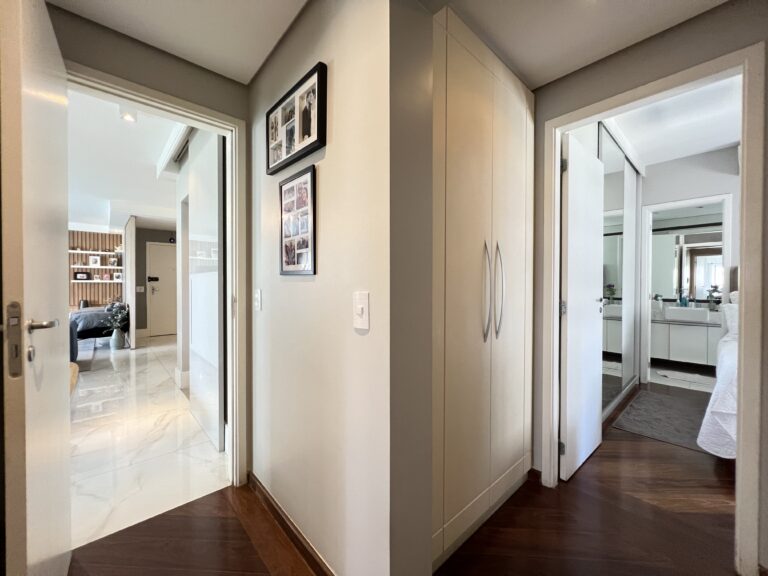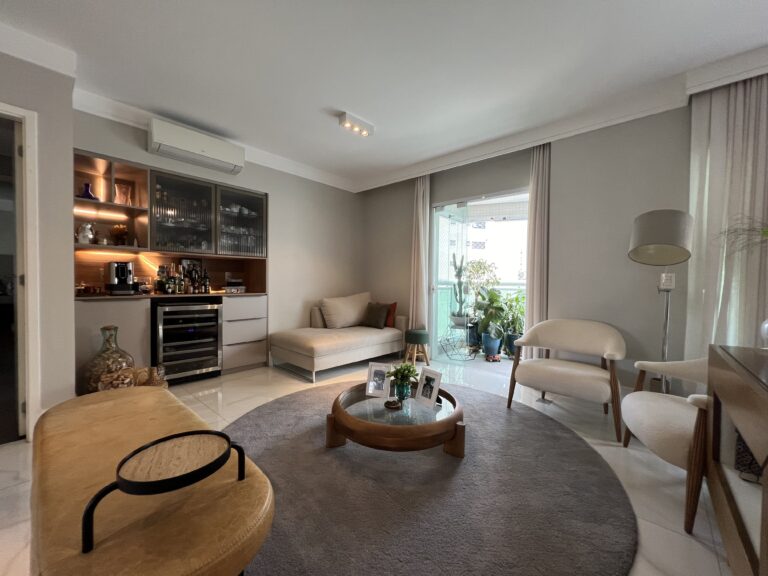 Com 176 m², conta com três suítes amplas, repletas de armários, sendo a Master com espaçoso closet e varanda privativa. O living ampliado se integra à varanda gourmet, que possui fechamento em vidro, piso nivelado e churrasqueira. A cozinha planejada, com ilha central, vem equipada com eletrodomésticos de alto padrão.