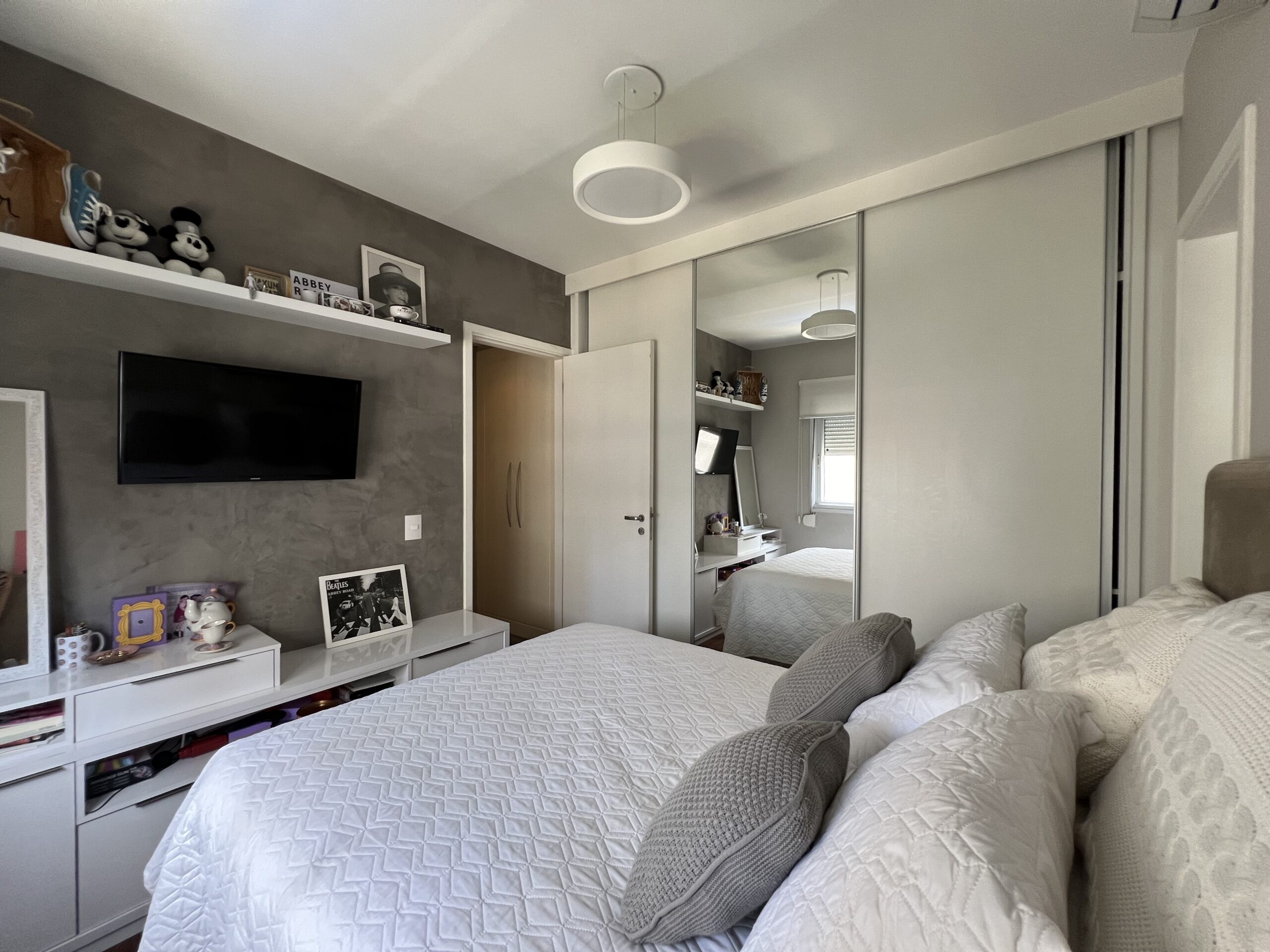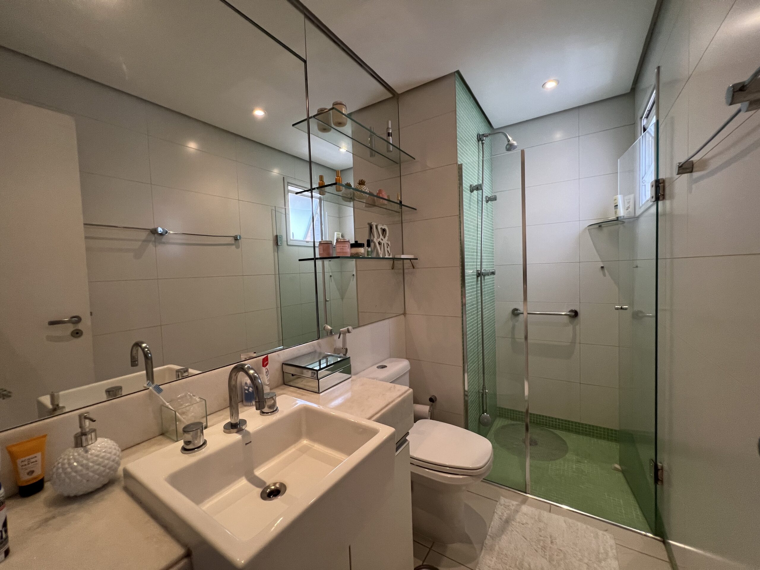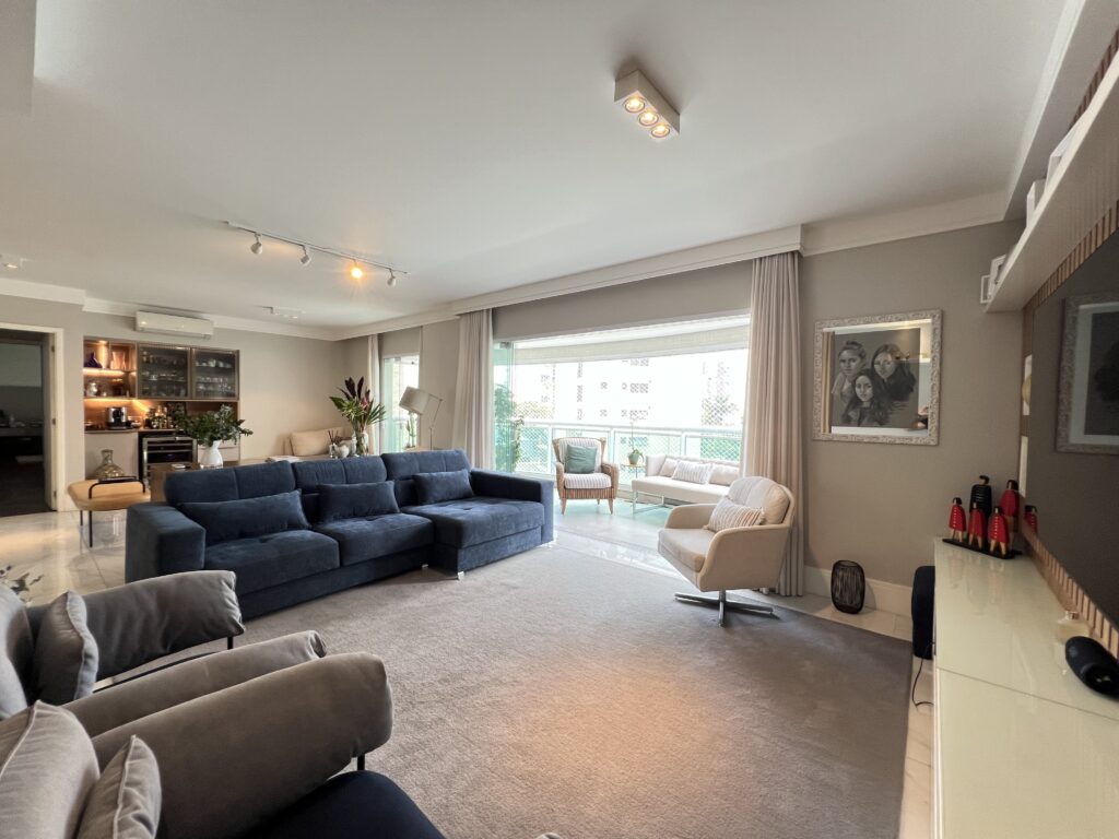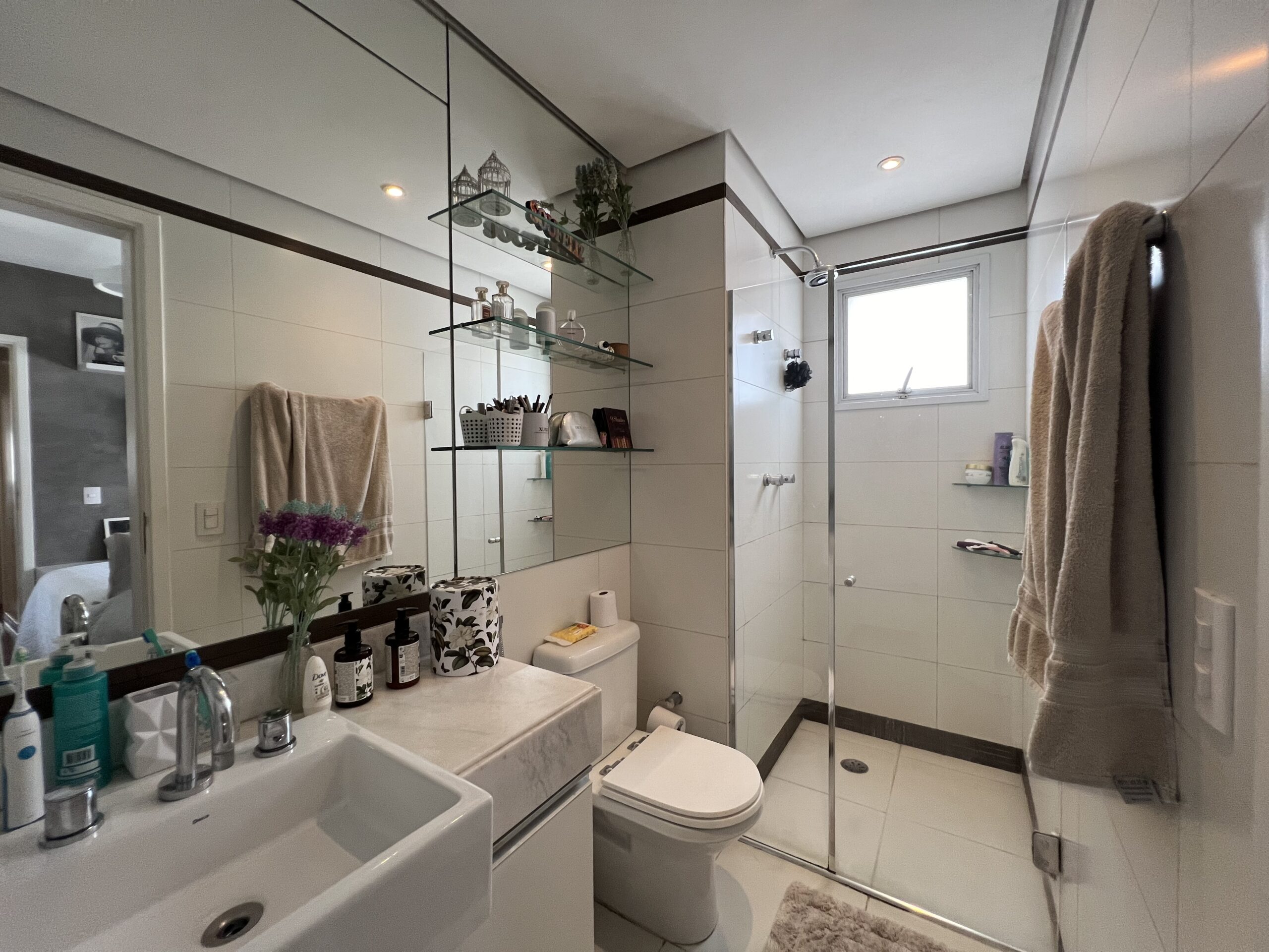 Com 176 m², conta com três suítes amplas, repletas de armários, sendo a Master com espaçoso closet e varanda privativa. O living ampliado se integra à varanda gourmet, que possui fechamento em vidro, piso nivelado e churrasqueira. A cozinha planejada, com ilha central, vem equipada com eletrodomésticos de alto padrão.