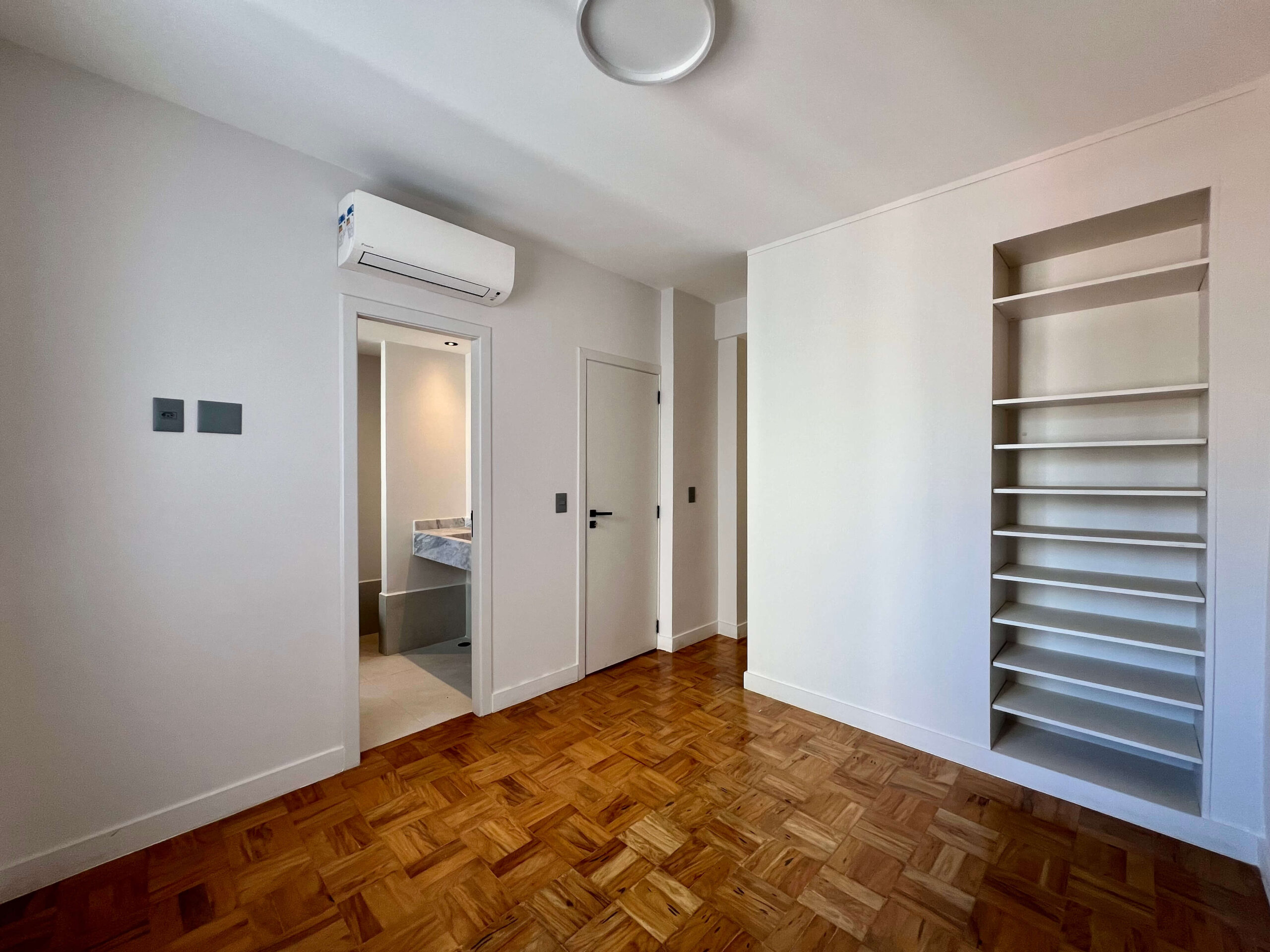 São 3 dormitórios, sendo 2 suítes, todos com ar condicionado muitos armários. Banheiros reformados com acabamentos de primeira, além de banheiro social + lavabo para maior comodidade (4 banheiros no total).
