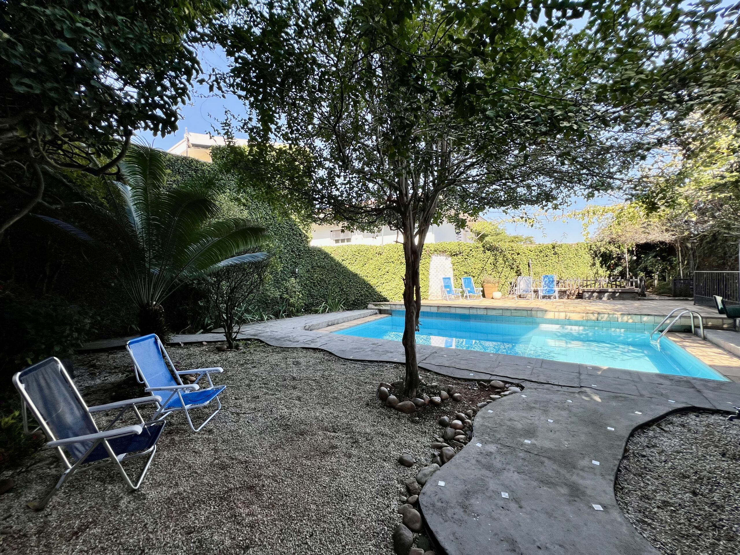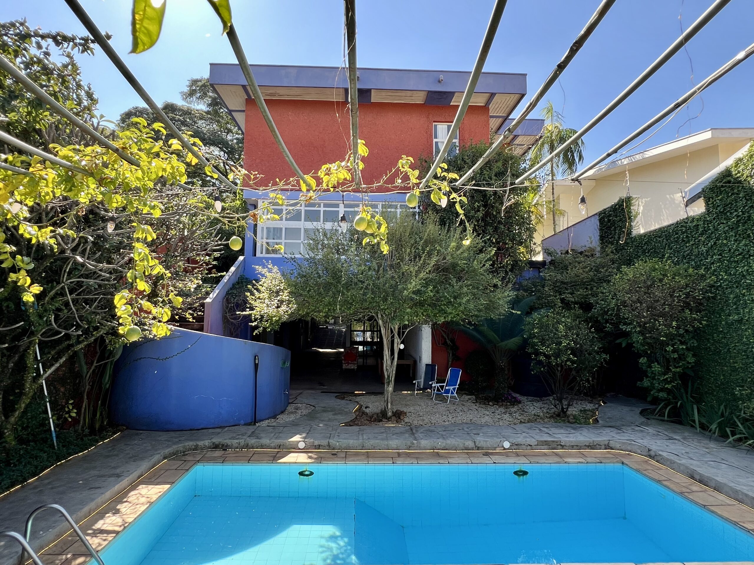 Com 500 m² de área construída, oferece ambientes amplos e iluminados, vista deslumbrante para o verde do bairro, um generoso quintal com piscina, árvores frutíferas e horta, grande área para festas/jogos integrada à garagem para quatro carros, entre outros espaços de muito aconchego .