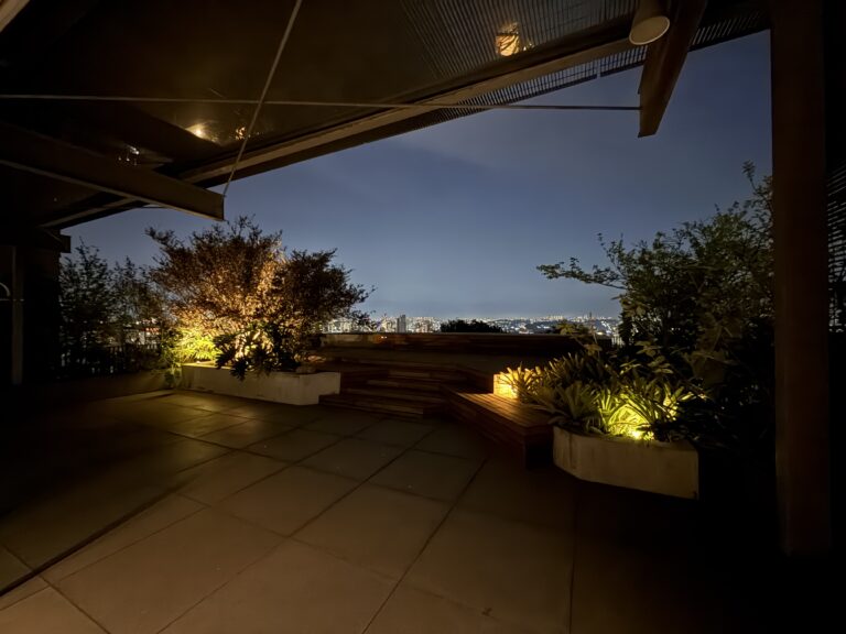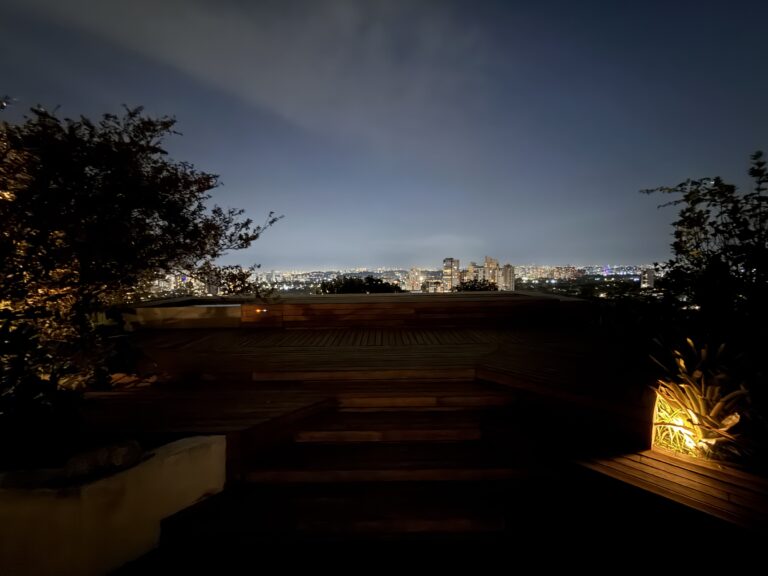 Localizado na parte mais alta do bairro, o prédio utiliza o desnível do terreno para oferecer a sensação de uma casa no alto da colina, com vista livre para o vale e a cidade.