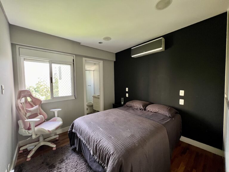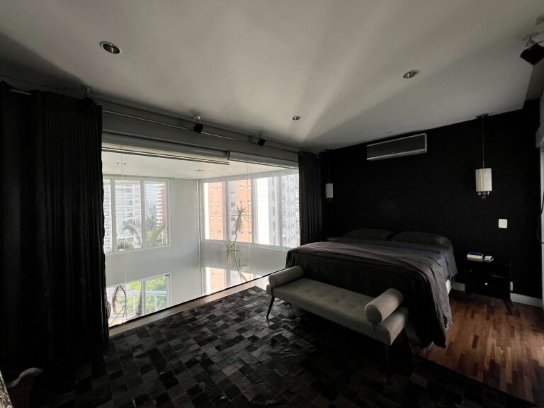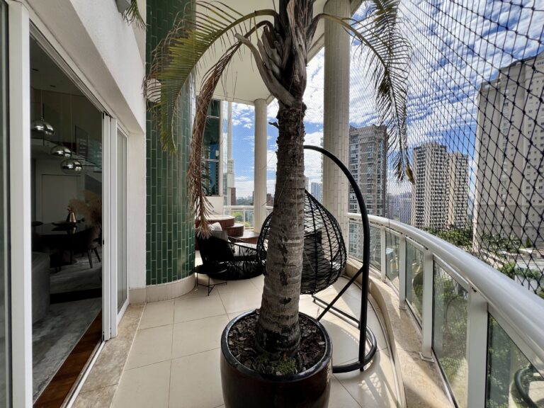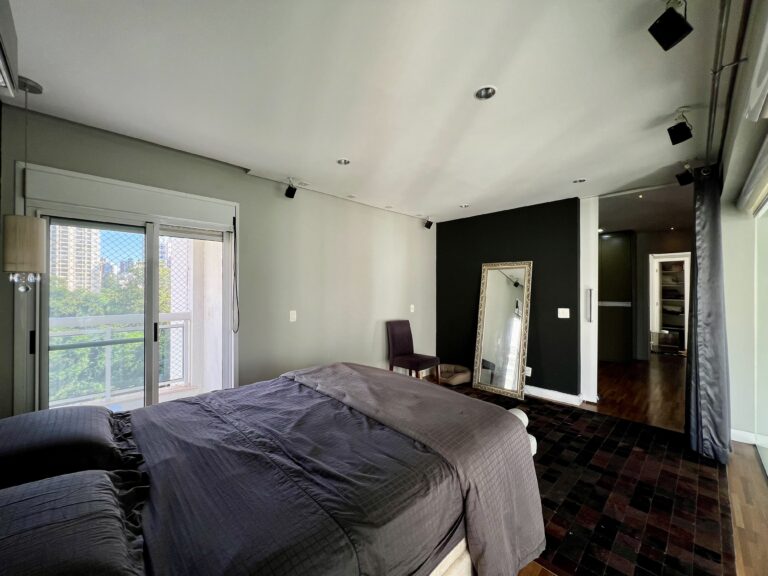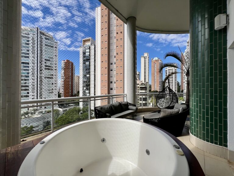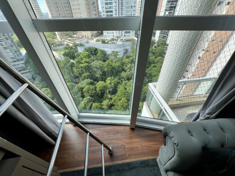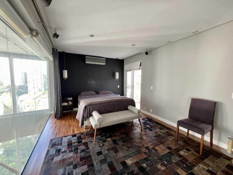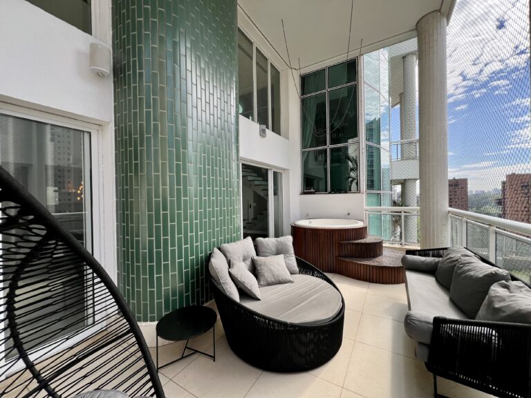 Com apenas um apartamento por andar, o imóvel oferece total privacidade e uma vista permanente para um frondoso bosque, graças à sua arquitetura totalmente envidraçada. A área social conta com uma ampla sala distribuída em três ambientes, lavabo, um escritório perfeito para home office e duas varandas – uma delas equipada com jacuzzi e churrasqueira, ideal para momentos de lazer e contemplação.