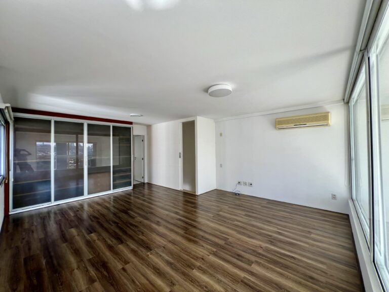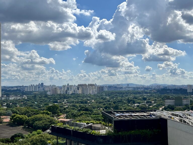 Com 134 m² e quatro vagas de garagem, oferece uma vista permanente para um mar de verde, com o Pico do Jaraguá ao fundo e um pôr do sol cinematográfico em frente à sua janela. As grandes janelas, o pé-direito duplo e a ampla varanda garantem luz natural abundante ao longo do dia.