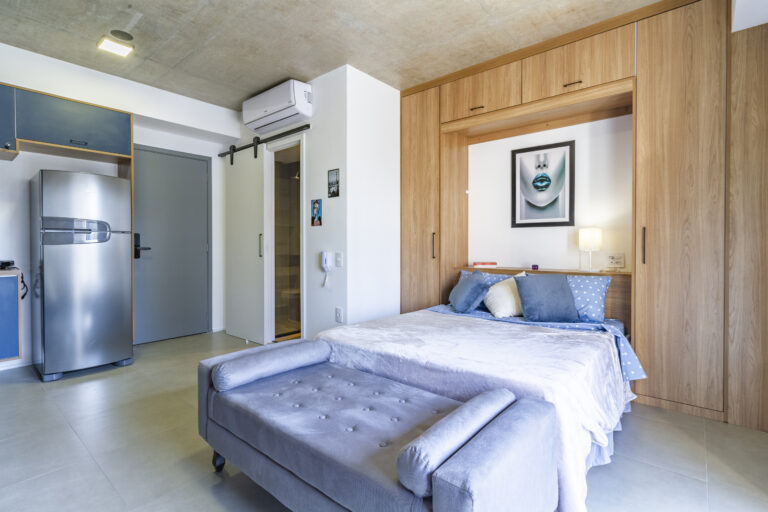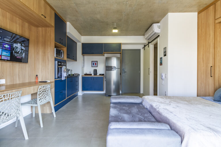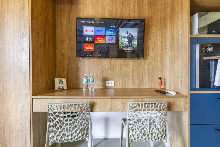 Uma das raras unidades do condomínio com vaga de garagem, combina funcionalidade e sofisticação, sendo ideal tanto para short stay quanto para long stay. Repleto de armários, oferece praticidade sem abrir mão do conforto.